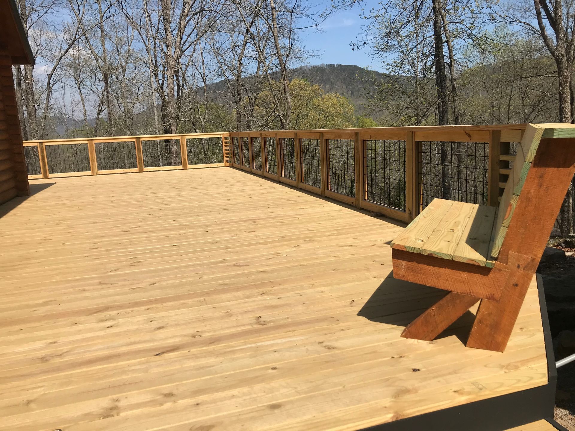 Large (2000+ sq. ft.) custom deck rebuild with custom railings and benches