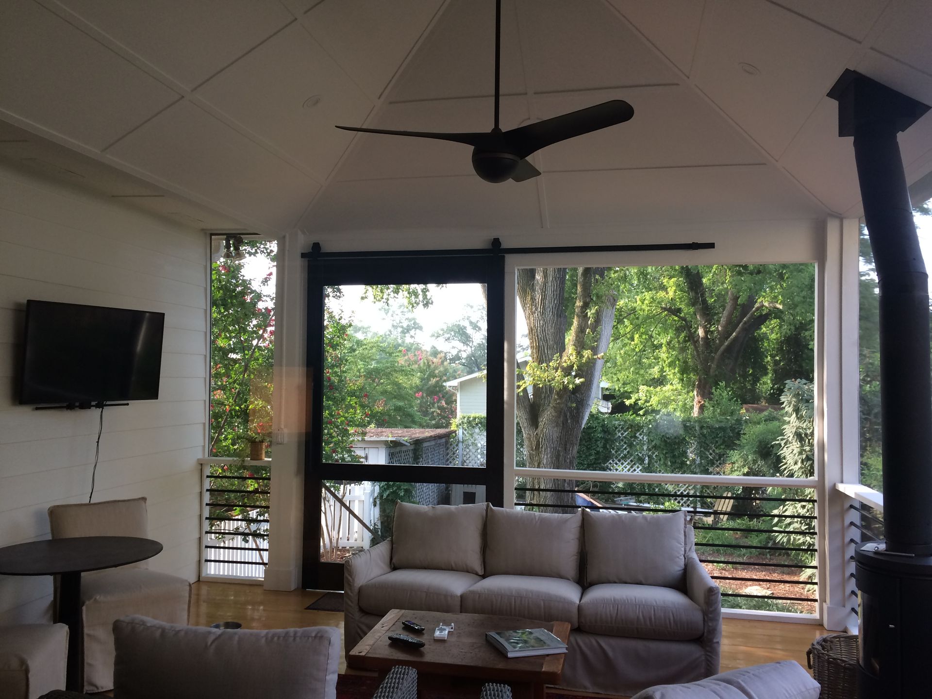 Replaced an old deck with a covered and screened-in back porch complete with an entertainment center for hosting guests