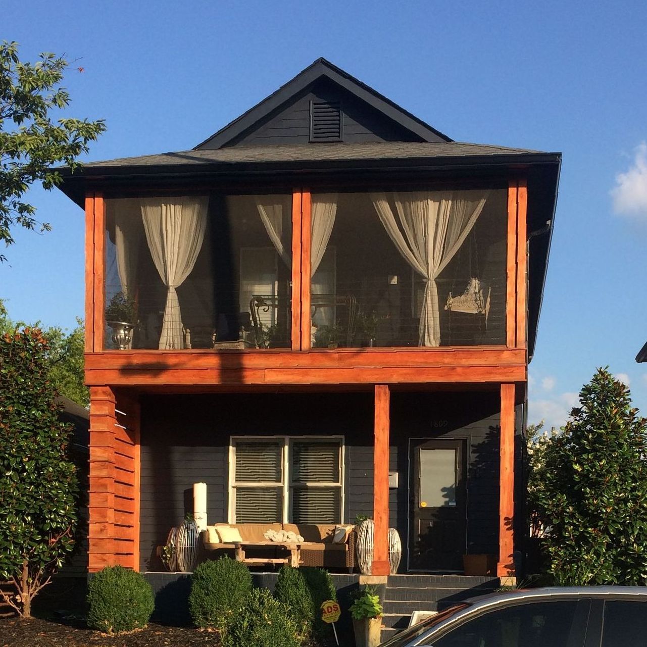 Remodel and modernization of a two story front porch using cypress lumber. The second floor is screened in along with a cable railing system for privacy in an urban setting.
